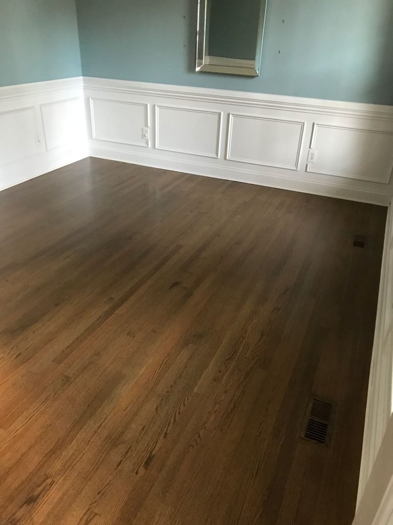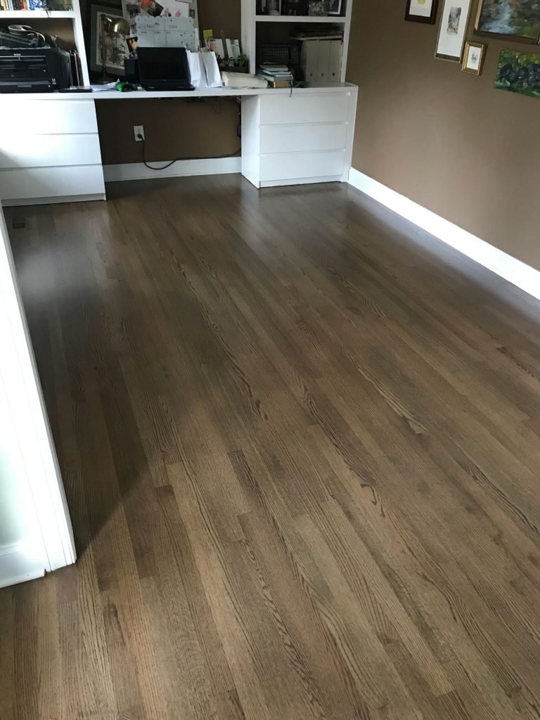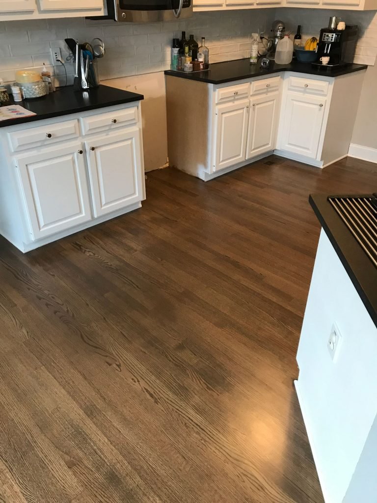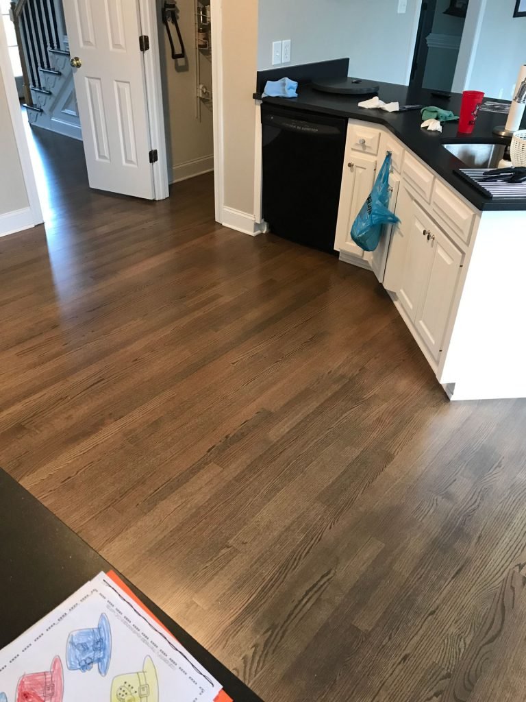 Hardwood Installation: 3.25 Red Oak, 50% Jacobean and 50% Classic Grey in Raleigh, NC