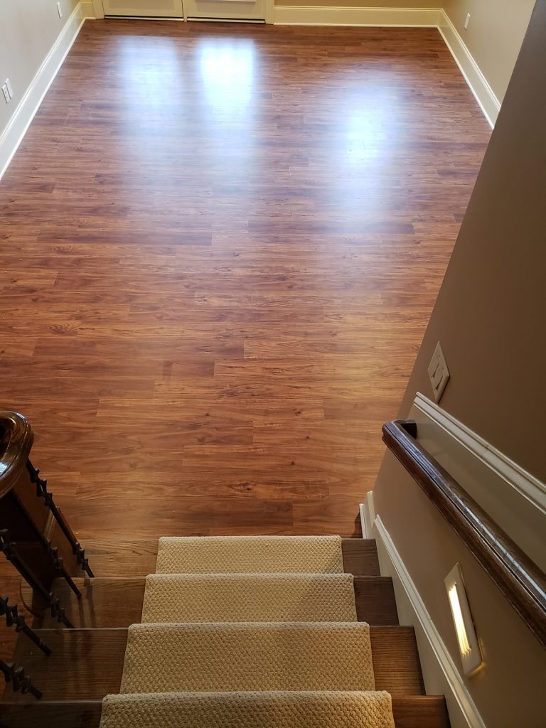 Walk Out Basement Coretec LVP Installation in Raleigh, NC