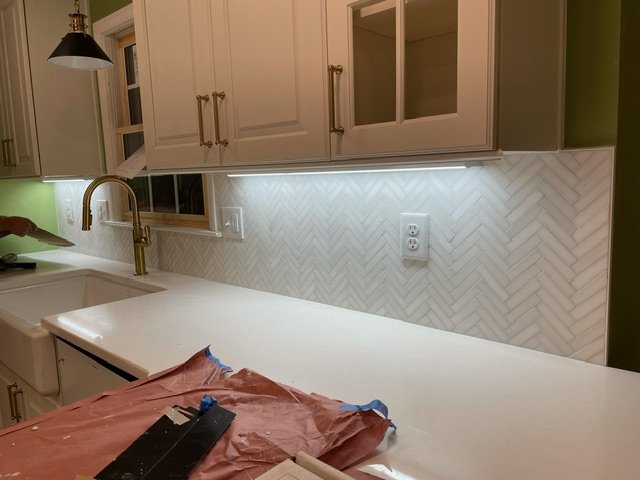 Elegant Kitchen Transformation with Altura Herringbone Mosaic Backsplash